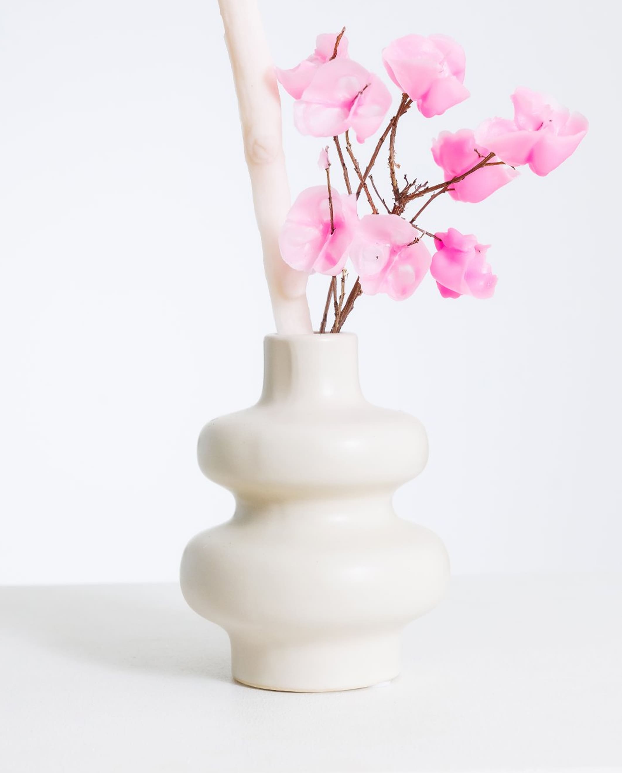 Палмов восък, натурални масла, памучни фитили и оцветители на растителна основа. Всеки елемент е подбран с грижа, за да бъде не само красив, но и безопасен за употреба.
